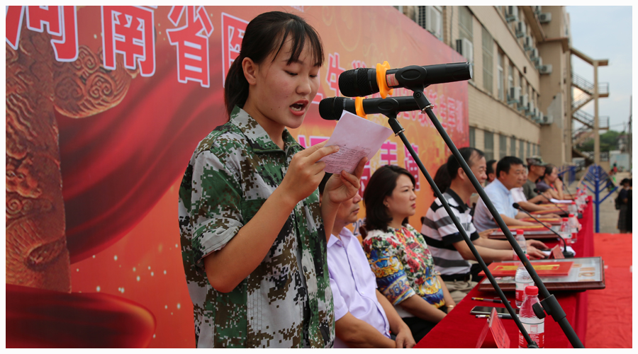 接着,纪委陈胜利书记宣布了军训“先进连队”获奖班级名单;军训总教官公布了军训先进标兵名单。公司党委李志明书记向预备役136师教官队赠送了锦旗。