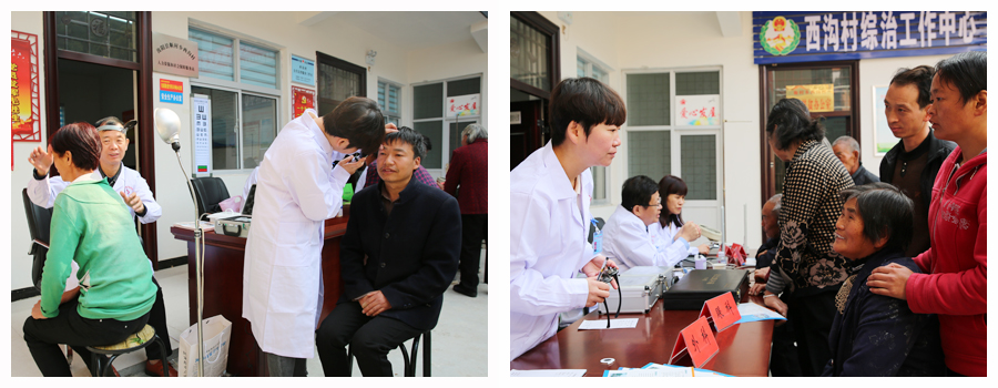 西沟村距离县城较远,地势偏僻,大多土地是山地。部分村民身体欠佳、常年患病,无钱医治,又不便到大医院检查治疗。为响应上级号召,解决贫困户就医难问题,河南省医药卫生公司精选医疗骨干,一行10余人,随同工信委精准扶贫工作组深入该村免费为村民义诊,将健康送到村民家门口。