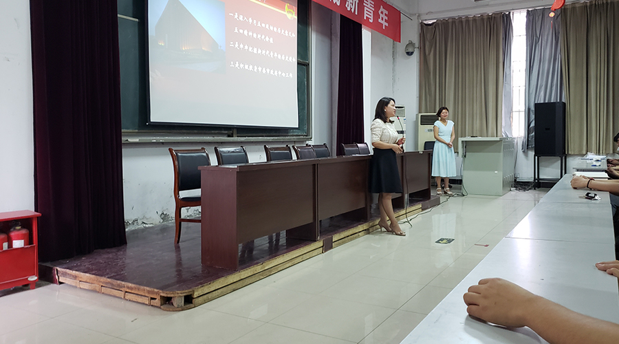 会上代鹏老师带领师生共同学习习近平总书记2019年4月30日,在纪念五四运动100周年大会上的重要讲话。新时代中国青年运动的主题、方向和使命:为实现“两个一百年”奋斗目标、实现中华民族伟大复兴的中国梦而奋斗。这就要求广大青年必须要树立远大理想,勇于担当时代责任,不断砥砺奋斗,练就过硬本领,为实现伟大的中国梦增砖添瓦。