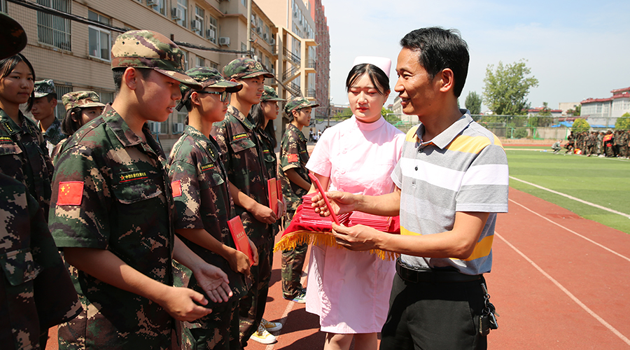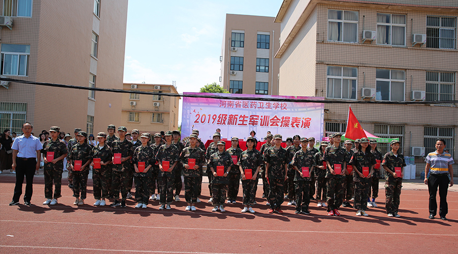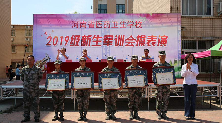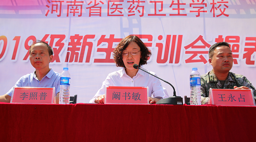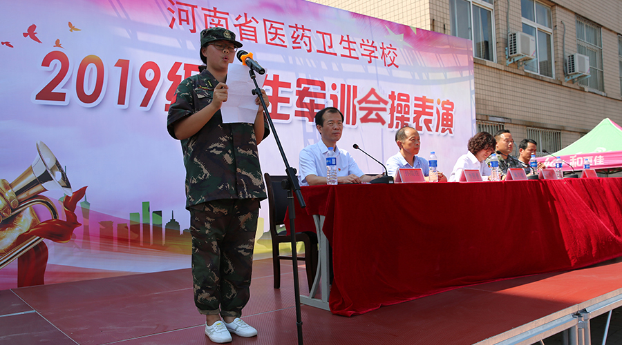 2019年8月30日上午,河南省医药卫生公司2019级新生军训会操表演在校综合运动场田径赛场成功举行。阚书敏副董事长、王永占总教官,公司员工科孙战胜科长、教务科王建峰科长、宿管科李照普科长参加了仪式。孙战胜科长主持了仪式。