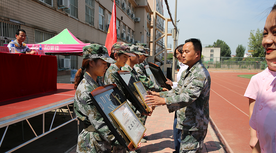 最后,阚书敏副董事长做了讲话。她向参与训练的教官们表达了诚挚的谢意,对参训的2019级全体同学的吃苦耐劳、勇于挑战自我的精神给予了充分肯定。阚董事长希望大家珍惜军训期间的点滴收获,把军训中养成的优良作风带到下一步学习生活中去,严格规范自己的言行;高标准严要求,认真学习、勤练技能、积极实践,树立远大理想,济世致远;不断进取,超越自我。同时,要自觉增强团队意识和集体主义观念,团结友爱、互帮互助,快乐度过精彩校园学习生活的每一天!