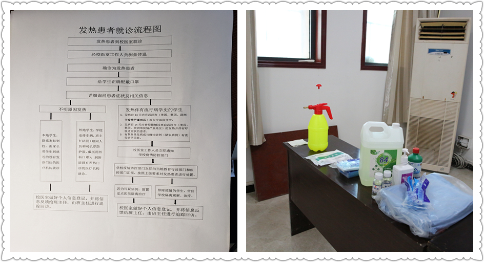 员工入校前,由校医室工作人员负责员工体温检测和日常员工紧急情况处理工作。确保从入校到员工在校期间的校园卫生安全。