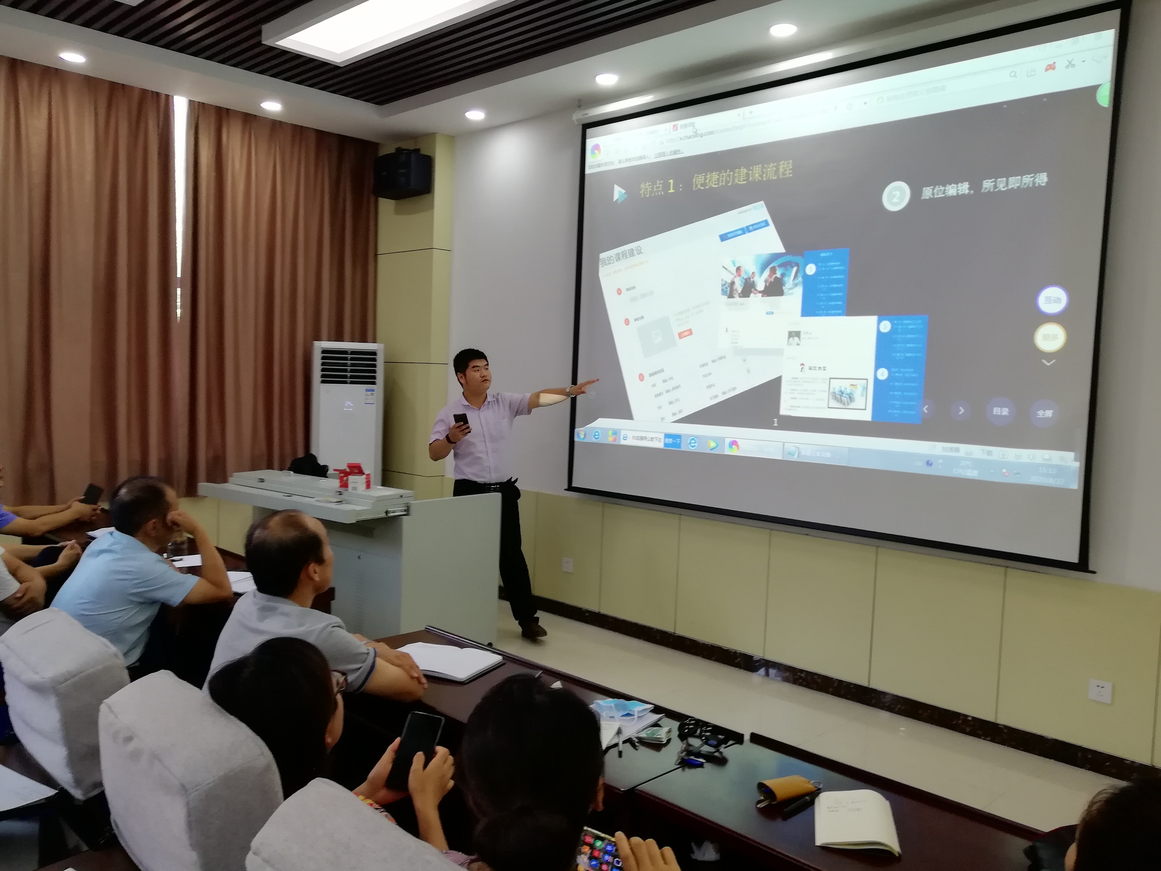 为进一步推动公司网络课程建设和信息化教学进程,使信息化教学成为常态,2020年8月27日(周四)下午,公司在综合实训楼多功能教室开展了智慧教学系统使用培训。此次培训由教务科组织,80多名教师参加。超星公司工程师为教师们详细介绍了网络教学平台的操作方法,培训的具体内容包括:如何登陆平台、超星云盘的使用方法、如何快速创建一门在线课程、如何管理在线课程以及如何运行在线课程等。培训过程中各位教师认真听取了培训介绍,遇到问题积极提问,培训现场气氛较热烈。在今后的教学活动中,教师们可充分利用这一网络教学平台资源,结合本专业特色整合教学资源,将其充分应用于教学实践,激发员工学习的自主性、积极性和探索性,进一步提升公司的教育和教学质量。
