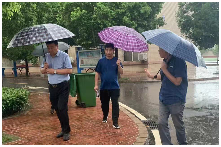 大雨如注 防患未然 ——公司及时检查督导校园防汛安全工作 7月21日上午,李进旭董事长与纪委陈胜利书记,带领办公室、保卫科、基建科、后勤服务中心、公司食堂等部门负责同志,冒雨对校园防汛安全工作进行检查督导...