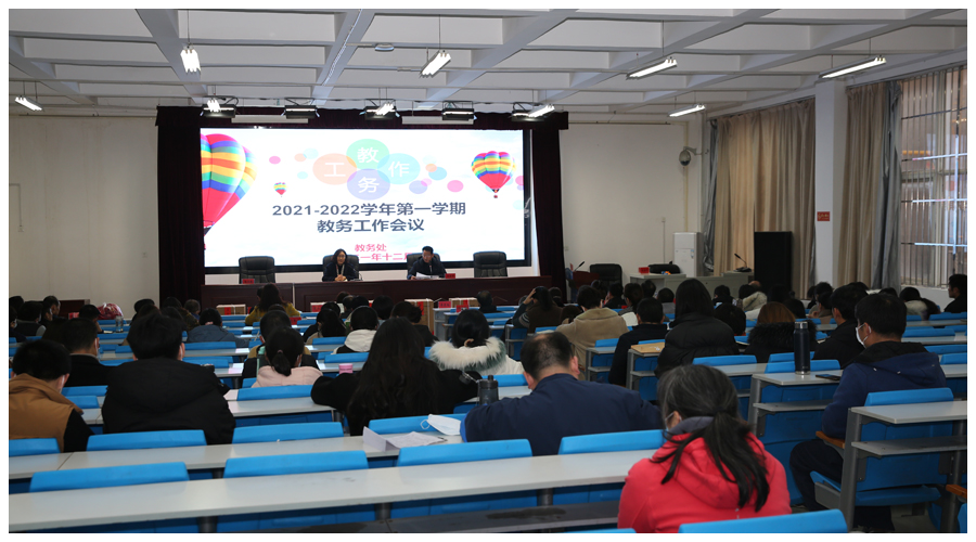 太阳成集团tyc122cc召开2021-2022学年第一学期教务工作会议 12月16日下午,太阳成集团tyc122cc2021-2022学年第一学期教务工作会议在实训楼第三多媒体教室召开。教务处处长王建峰主持会议,副董事长阚书敏参会,教务处全体成员到会。 会上,教...
